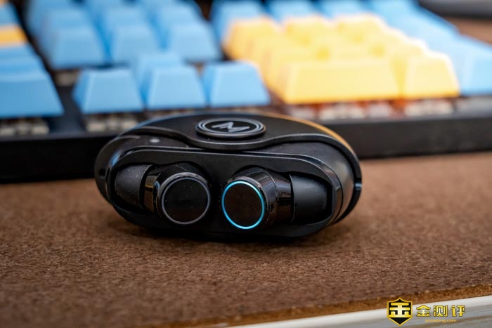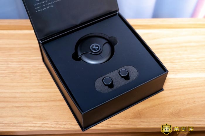 开盖后可以看到充电仓和两只耳机,圆圆的线条就是渡漫DUALMM R1 PRO的设计语言。