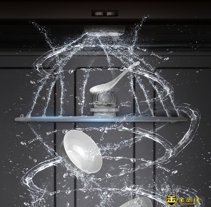 在洗碗的时候,这款洗碗机通过顶部,中间以及底部的三层喷臂进行工作,实现360°的立体喷淋,这样可以确保无死角的冲刷效果,配合推荐的餐具摆放方式,清洁得会更加彻底。
