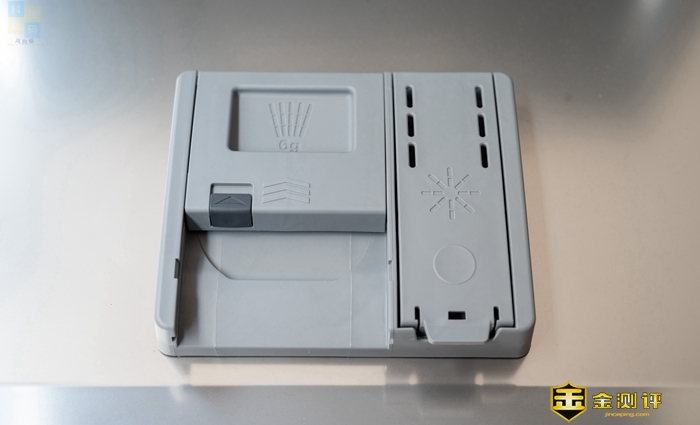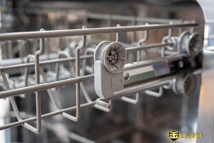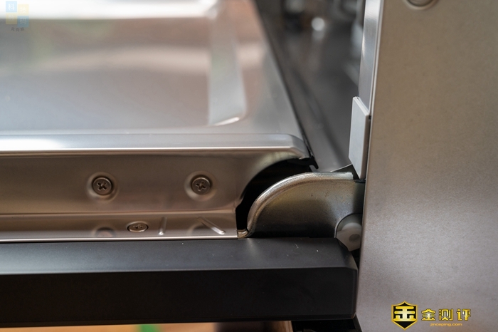 另外这件金属握把的手感确实不错,表面经过了磨砂处理,设计上有一点后现代的风格,日常使用时,开合操作比较舒适。同时这款洗碗机的外门开合阻尼控制得很好,开门后不会下坠,这样日常使用会更加安全。