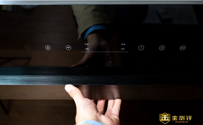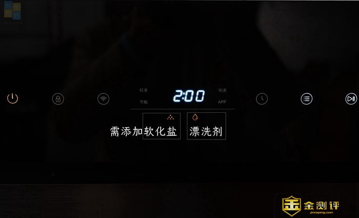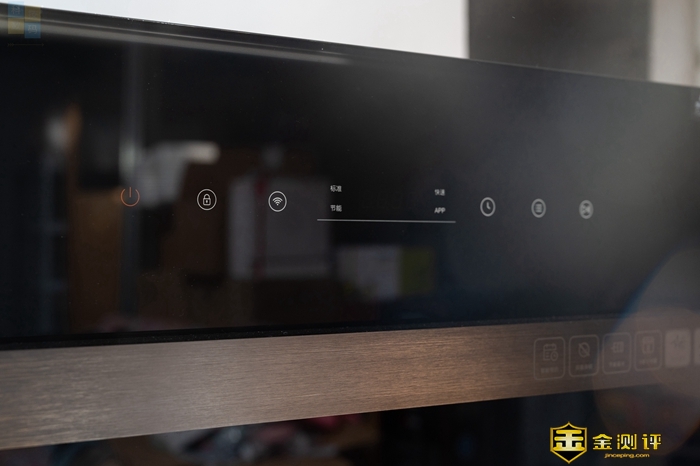 近年的家电产品基本都是触摸式按键设计,云米这款产品也不例外,不过它上面的按键相对少一点,毕竟它本身智能化和自动化程度更高,不需要太多的人工干预。这款洗碗机的按键大多没有文字标注,但仅看图标,大家应该也能知道它们的功能,而在正中的位置,则是有一个小屏幕,可以显示洗碗机工作的剩余时间,屏幕旁边的四个模式灯也会在选中后亮起,用起来感觉很直观。