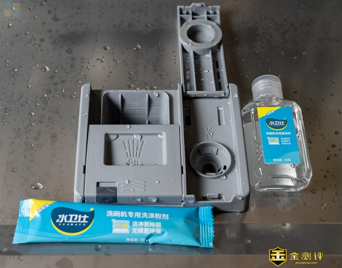 云米洗碗机所配备的分配器,也是意大利进口的配件,日常使用的时候会更加节省洗涤剂。漂洗剂倒满之后,可以用很长时间,不用每次都加。洗碗粉和漂洗剂在洗碗机里面,主要是起到清洁和辅助烘干的作用,以往都需要手动控制和调整计量,但是云米这款洗碗机的智能化做得很好,不用手动设置,也可以获得很好的洗涤效果。