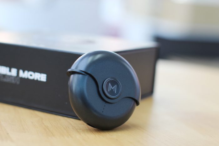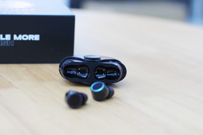 打开盒盖就直接看到了这个类似于指尖陀螺的耳机充电盒,两枚小巧的耳机就摆放在充电盒的下方,蛮有仪势感。