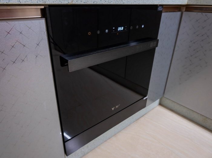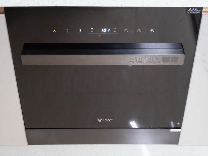 我给安装师傅搭了把手,将洗碗机推了进去,上门还有一丝缝隙,完美,然后安装的师傅还用快洗模式试机,确定进出水正常,喷淋正常,水管无漏水后才离开。