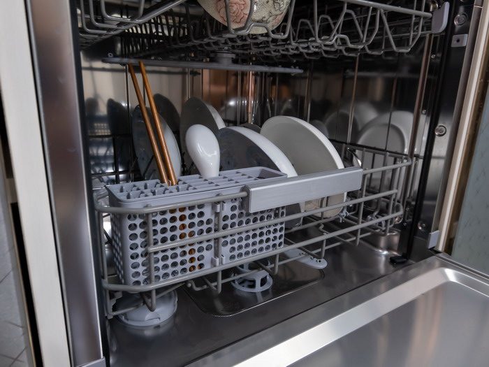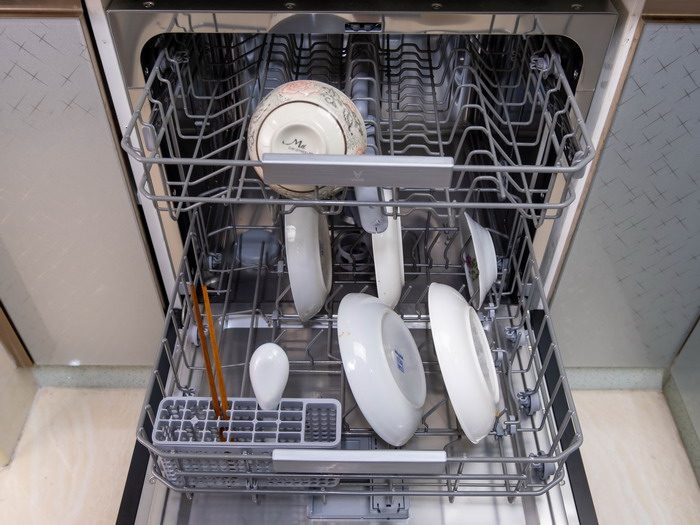 洗碗粉剂和漂洗剂我都添加了,然后按照说明书的指导正确的摆放了上了用过的餐具,不过杯子给漏了。