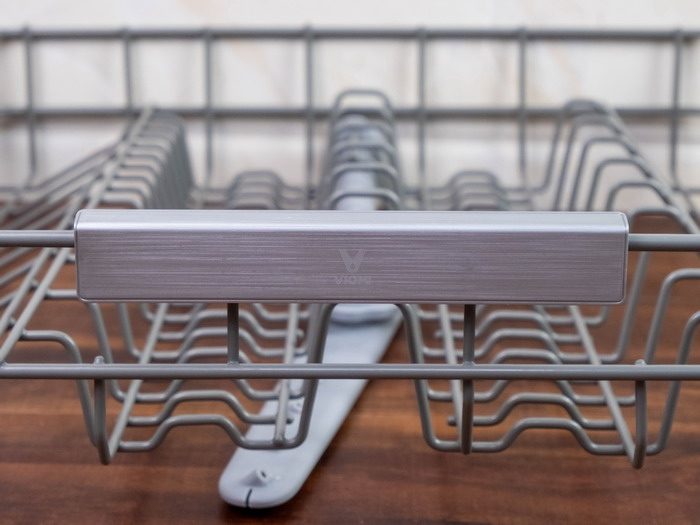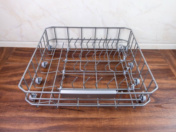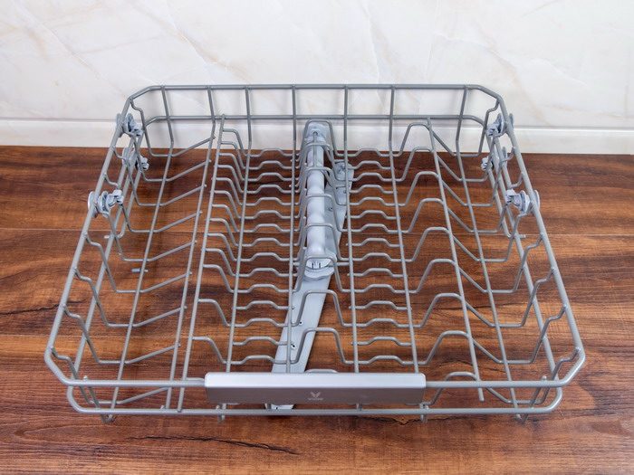 云米互联网洗碗机Iron X1的上下碗篮设计不同,上碗篮还集成了中间的喷臂,推到机身内部的时候就会与水管自动连接,这样就能喷淋。上碗篮主要是放味碟,米饭碗,马克杯,汤勺饭勺这些餐具。碗篮的做工相当不错,用来充足,导轨上的滑轮也是非常顺滑。