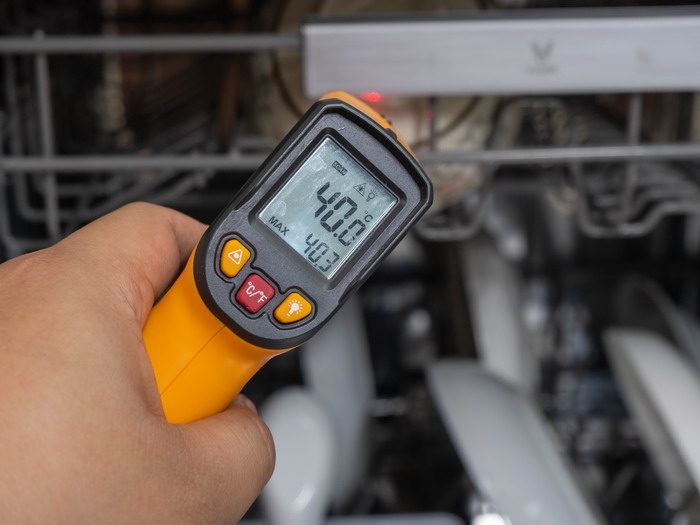 我用测温枪对餐具进行了测试,还有40摄氏度左右,云米互联网洗碗机Iron X1的烘干方式并不是全程热风干燥,在末期是通过余温进行烘干的,这样等整个洗涤程序完成,剩下的温度就刚好,不会烫手,这样的设计非常的科学和人性化。