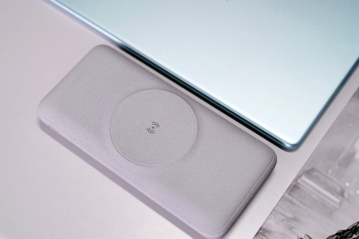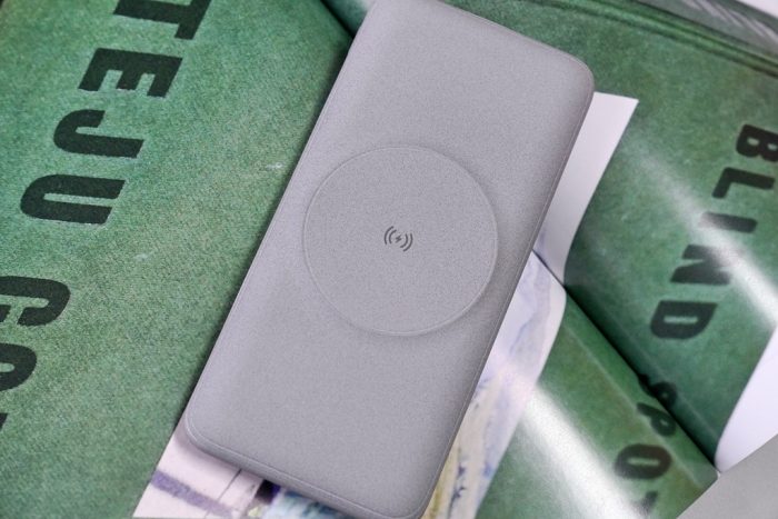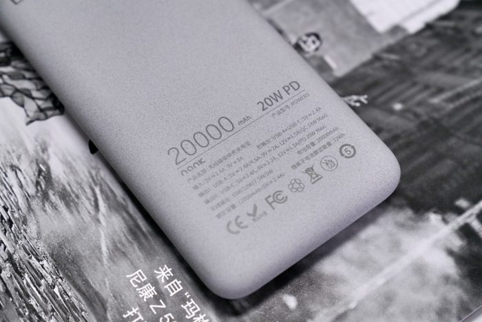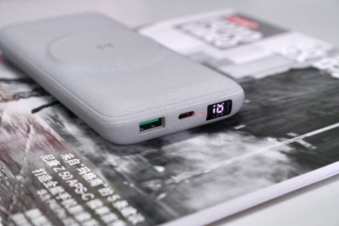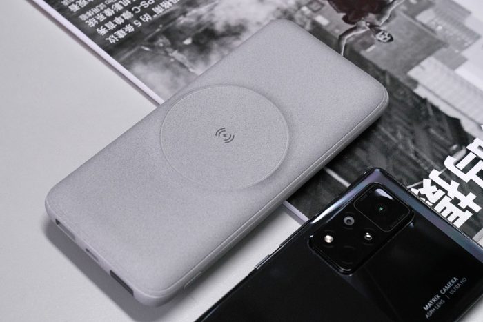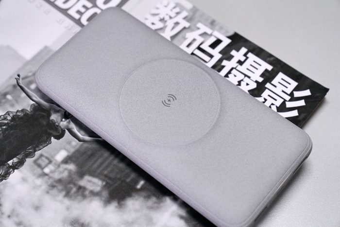 南卡POWER-3无线充电宝整体为灰色简约设计,表面拥有微微的磨砂质感,边角圆润,触感舒适且不易沾染灰尘。