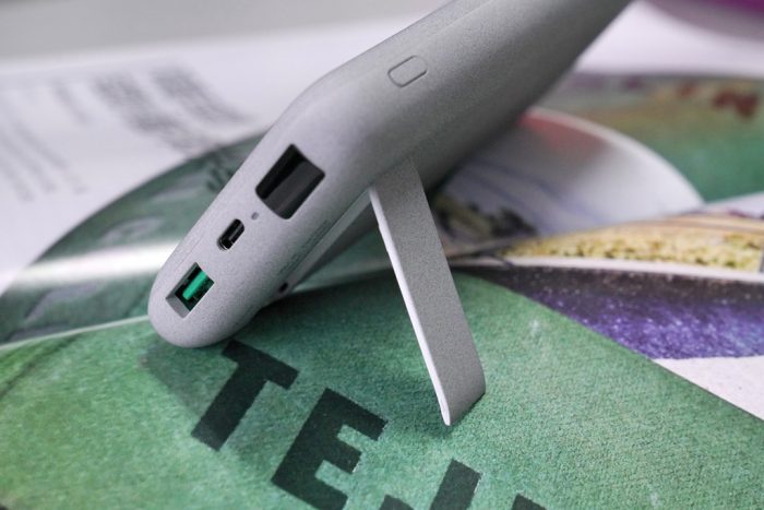 除了充电之外,南卡POWER-3还自带一个45°角的支架,打开充电宝背部的隐藏支架,我们可以在手机充电的同时看视频和聊天,充电、娱乐两不误。