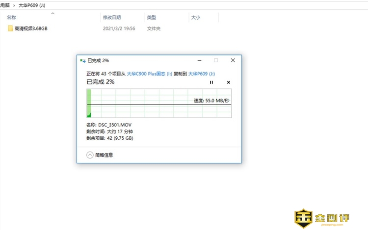 接下来咱们将电脑上的内容,复制到U盘,看看实际效果怎么样。经过实际复制测试,最高存写速度约为55-60MB/s,当然了,在传输过程中,也会有一些高低起伏的情况,总体综合来看这款U盘的日常使用存储效率方面,还是不错的