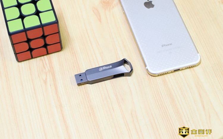 整只U盘非常小巧,长宽高分别约为66*21*11mm(手工测量可能略有误差),由内外两部分构成,外部是金属护壳。内部U盘本体中间,设计了可360°旋转。转动过程中能够听到“哒哒哒”的定位机械声,无聊时还可以当一只解压神器