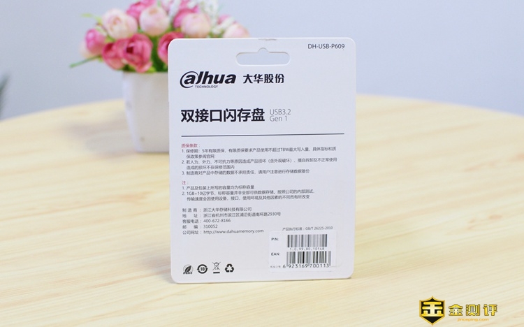 包装方面,采用硬纸板压塑方式,包装正面和背面印有“大华股份”字样,说明这款U盘系出名门。同时正面有5年质保的醒目标志,也说明了大华存储对品质的态度!