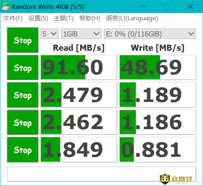 从测试结果可以看出,这款U盘的1GB文件顺序读写速度为91.6MB/s和48.69MB/s,基本符合官方的数据,其中读取速度的表现很不错,所以很适合作为工作文件分享的工具。