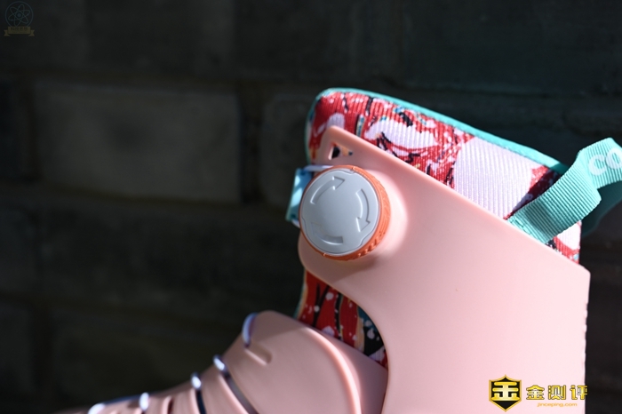把尺码调整好之后,我们就可以帮小朋友把鞋带固定上了,酷骑轮滑鞋不是用系鞋带或是粘魔术贴等方式锁定鞋带的,它上面配备了两个旋钮,可以通过拧动的方式来系紧鞋带,这样固定的效果更加可靠,而且小朋友也可以轻松搞定。如果想拖鞋的话,把旋钮往外一拉,鞋带就可以松开了,非常的方便,而且日常使用也不用串鞋带。