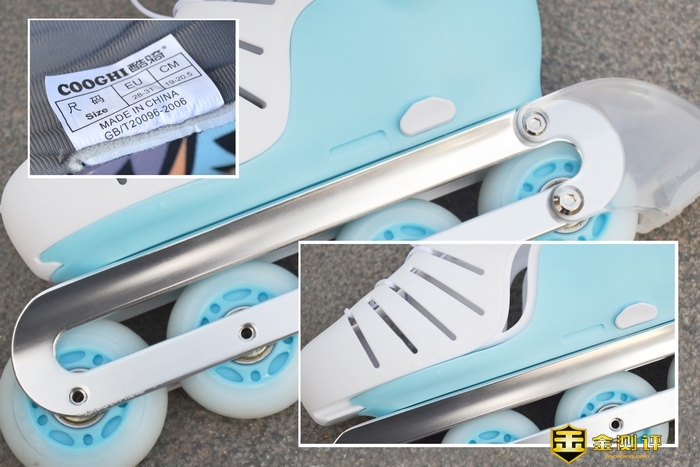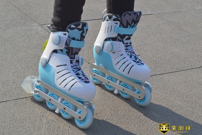 因为儿子是个大新手,所以安装上锁轮胶塞。固定住轮子,防止轮子滑动,这样就可以让初学者学会掌握驾驭轮滑时能够保持平衡。