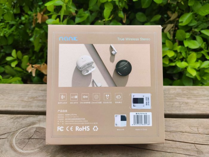 南卡Lite Pro的包装盒造型四四方方,采用了流行的玫瑰金配色,显得高端大气,正面是烫印的产品名称和品牌LOGO,十分醒目。