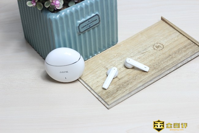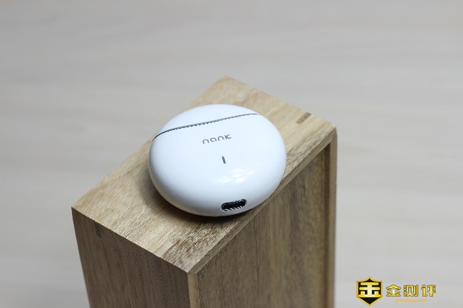 白色的耳机搭配白色的充电盒显得非常干净简洁,单元外壳处印有NANK字样,光滑的表面有足够的防污能力,整个设计非常不错。