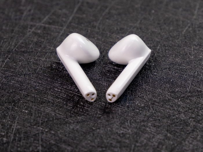 在充电仓的地步可以看到充电用的金属触点。