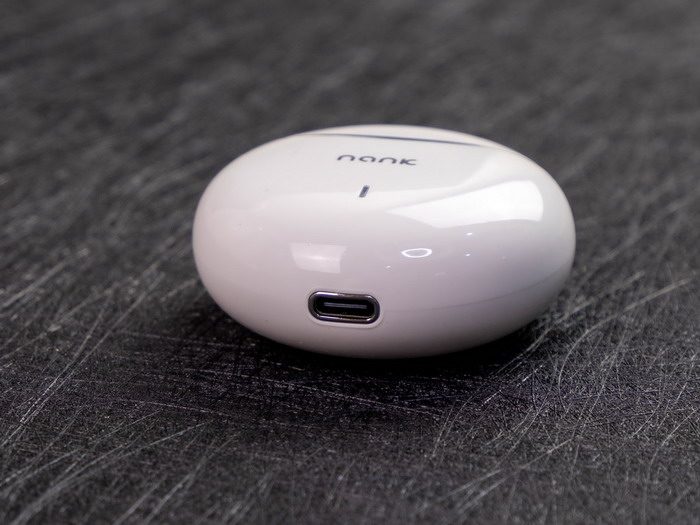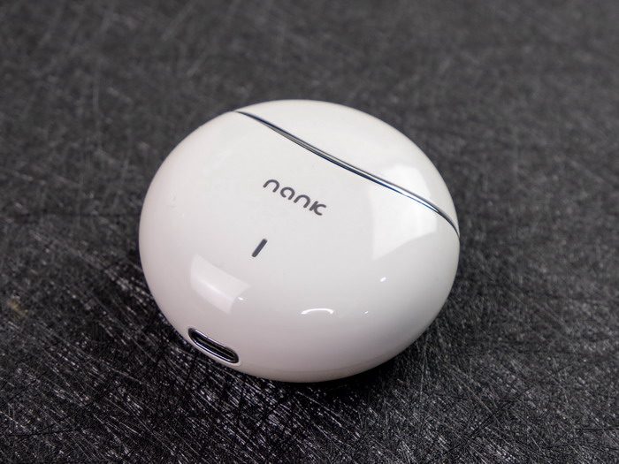 南卡半入耳真无线蓝牙耳机Lite Pro的充电仓外形设计很圆润,表面的材质类似于钢琴烤漆,质感很出色,正面印有南卡的品牌Logo,同时还设计有充电指示灯。
