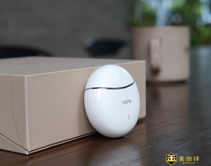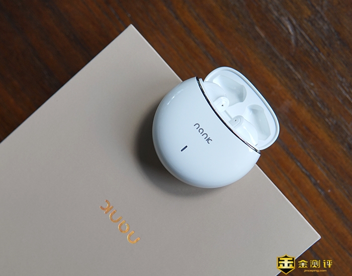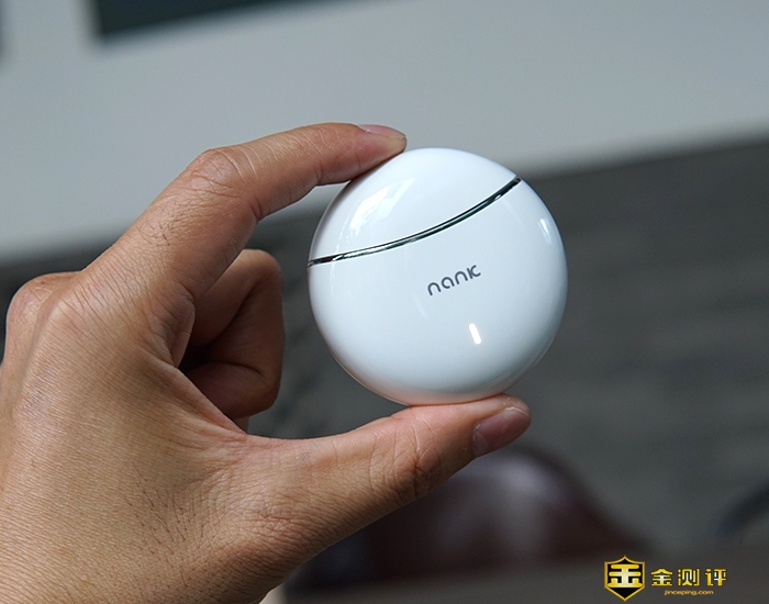 南卡Lite Pro耳机当前有黑色和白色两个版本可选,黑色低调神秘,白色纯洁文艺气息十足。考虑到耳机以后会送给老婆使用,所以选白色准没错。电池盒通体洁白富有光泽,正面除了nanic logo外,只有1个状态指示灯,可显示耳机的使用状态和剩余电量。