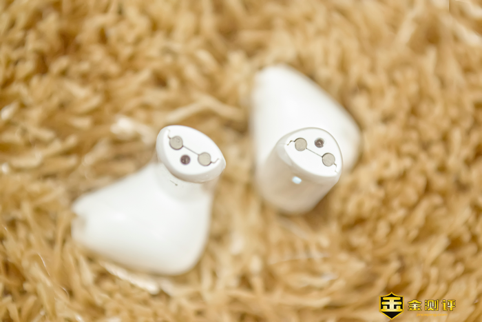 耳机的底部是两个金属触点,用来给耳机充电时与充电盒接触。另外的小孔是另外的两个通话降噪麦克风位置。四个降噪通话麦克风加持的Lite Pro,实际通话使用,通讯流畅且清晰。目前还没有在通话过程中发现问题。