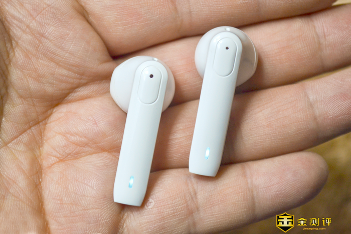 取出Lite Pro耳机,上方区域是触控操控位置,平时使用轻点即可。这里的两个小孔,是通话降噪麦克风的位置。向下是耳机的单色LED工作指示灯,不同的闪烁方式,对应不同的状态。耳机内置高通芯片+蓝牙5.2+陶瓷天线,连接距离远信号更稳定、抗干扰能力更强悍,陶瓷天线抗氧化性能好,经久耐用信号始终。