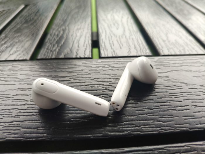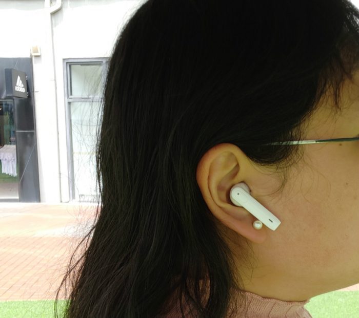 取出耳机,可以看到这款Lite Pro和Lite在外形上还是很像的,操作区域被圈出来了,盲触时也很容易操作。半入耳式的设计不封堵耳道,比较透气,夏天戴着不热,侧躺也不会因为耳机侵入耳道而感觉不舒服。最重要的是它的横截面呈三角形,佩戴起来稳固性很好,不容易掉也不容易丢。机体精致小巧,单个耳机仅重3.8g,佩戴在耳朵上轻如无物,佩戴舒适。