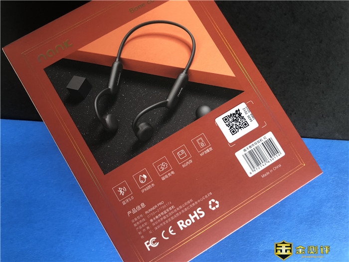 NANK南卡骨传导Runner Pro产品的采用封套彩盒的包装设计,看图,整体简洁时尚,我们在这就不详细说了,底盒有NANK南卡骨传导Runner Pro产品大图,还有型号、参数和厂商信息介绍等。