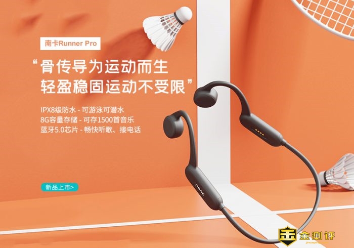 NANK南卡骨传导Runner Pro蓝牙耳机产品外观设计简洁时尚,不入耳这种较为新潮的耳机形式,佩戴舒适,没有听诊器效应,运动时使用更家安全,音质方面经过体验整体表现也还是不错,IPX8全防水,内置8G内存,一般的MP3音乐可以存入最多达1500首,蓝牙连接和内置MP3器的两种播放模式,在不同的运动方式下可以提高了整体稳定性和使用安全性,同时也带来了更低功耗延长电池使用时间,超长续航等方面的表现也都非常不错。