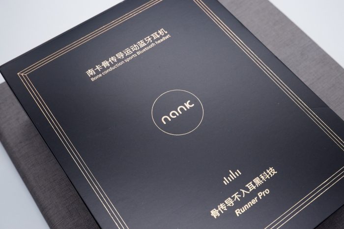 南卡Runner Pro的外包装采用了南卡产品的一贯设计,正面用黑底金字衬托出产品的深邃,背面则印有产品的图案以及基本信息。