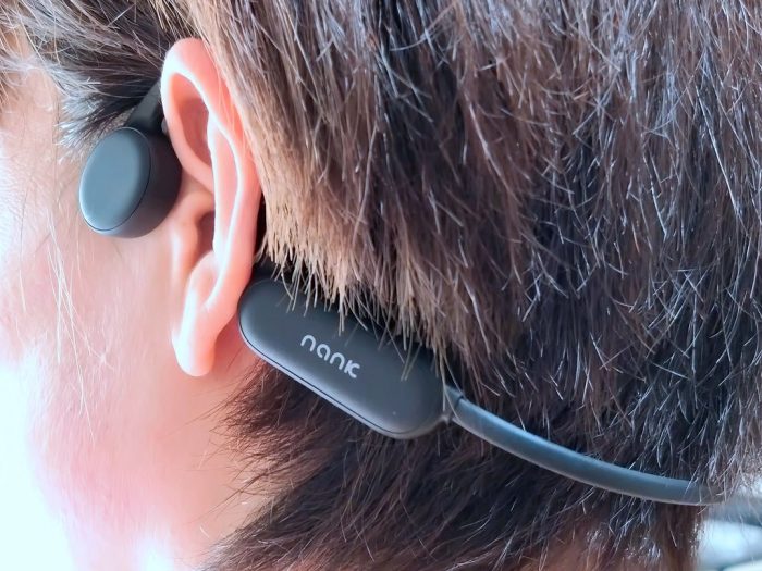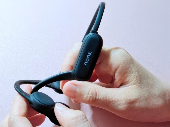 南卡Runner Pro是一款骨传导耳机,工作原理是将声音转化成不同频率的机械振动,然后通过人的颅骨、听觉中枢等来传递声波,它最大的优势就是耳塞不需要伸入耳道,所以它的外观采用了贴合耳根的挂钩形设计,前端是两个圆形的振子喇叭。这样的设计在运动时佩戴会更加稳固,完全不用担心会掉下来。