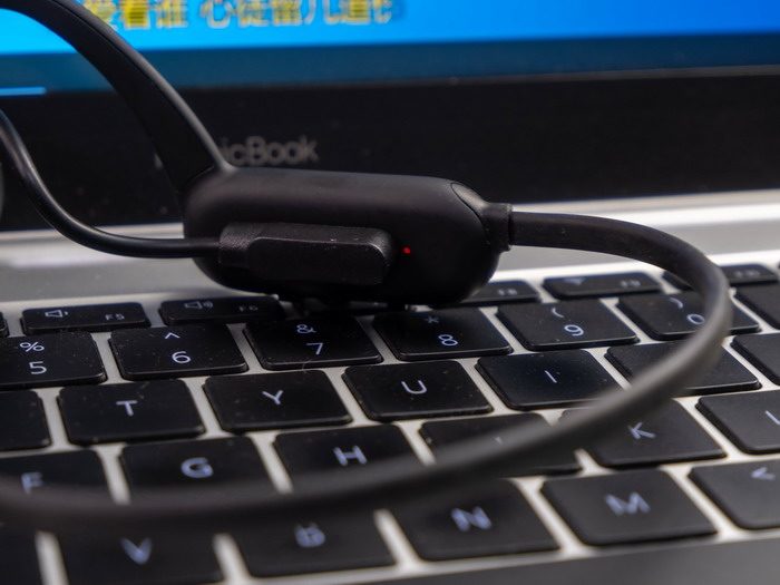将南卡骨传导Runner Pro不入耳蓝牙耳机用数据线连接电脑,这时候耳机也顺便充电中,同时在电脑上会显示出盘符。
