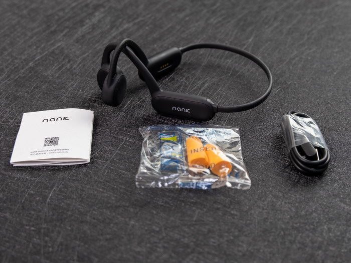 南卡骨传导Runner Pro不入耳蓝牙耳机的包装盒里有:南卡骨传导Runner Pro不入耳蓝牙耳机,充电线,耳塞和使用说明书。