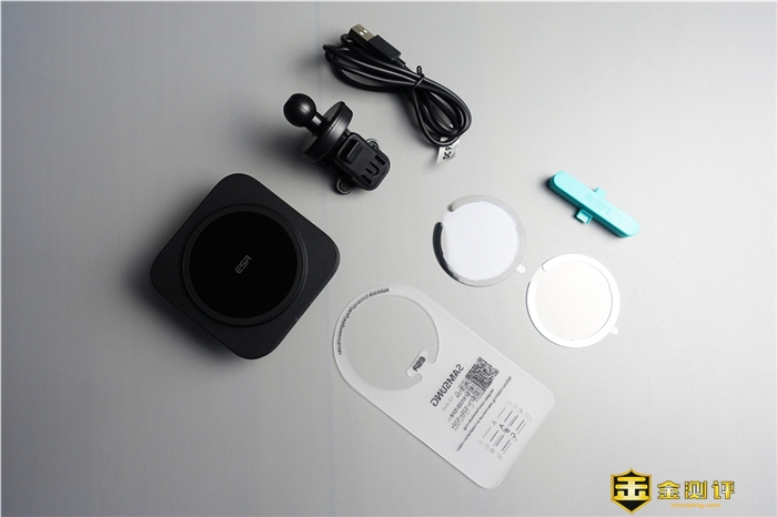 在外观设计方面,ESR亿色无线充电支架整体上来看还是比较小巧的,产品尺寸为80*80*8mm,外壳采用的是阻燃的ABS材质,在车内封闭环境下,能够耐高温正常使用。