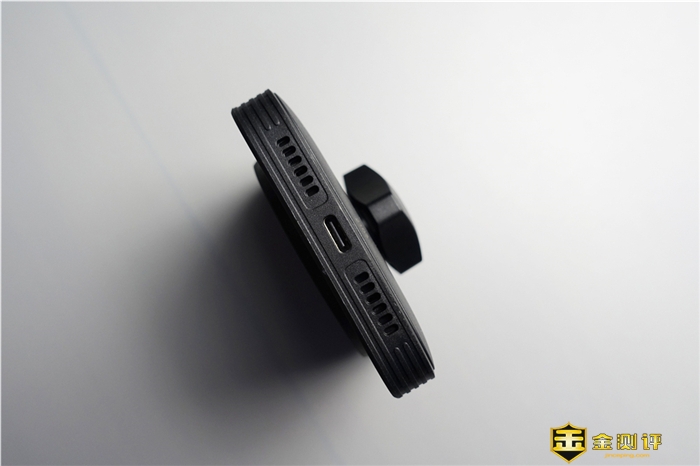 在其底部预留了Type-C输入接口,能够稳定供电,给无线充充电足量供给,同时为了让充电上更加的高效,也是设计了多个散热孔,以达到充电上的高效稳定。