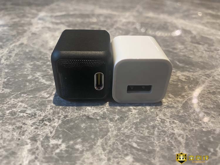 AoHi Magcub 30W微型快充充电头外观表面是大气的纯黑, 顶端是立体微雕钻石纹理,富有质感和触感,材质摸上去很舒服。体积控制优秀,仅有成人拇指大小差不多,28mm(长) × 28mm(宽) × 32mm(高)基本上和苹果5W的充电器一致,非常便于携带。重量只有39.4克,功率却高达30W,是一款目前市面上罕见的微型体积大功率充电器,能解决几乎所有智能设备的充电问题,是一款具有多功能智能快充性能的充电头。