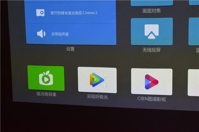 实际的投射效果。峰米C2采用了ALPD3.0 激光荧光显示专利技术,整个色彩更鲜活自然。需要特别说明的是,由于拍摄器材的限制,峰米C2的显示效果要比拍摄出的画面更加细腻自然。