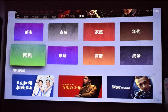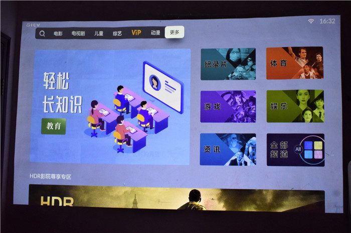 在网络等设置完成之后,峰米C2会进入到FengOS自研系统,整个系统拥有很好的全屏预览沉浸式体验观感,加上FAV/FAA音画引擎,开机无广告,让整个观影体验又提升了一个档次。峰米C2配备了2G DDR4内存、16G高速闪存,CPU采用Amlogic T972,支持8K解码。整个FengOS系统界面分为电影、电视、儿童、综艺、VIP、动漫、更多等模块,拥有海量的影视剧资源,我们可以根据自己的喜好选择观看。