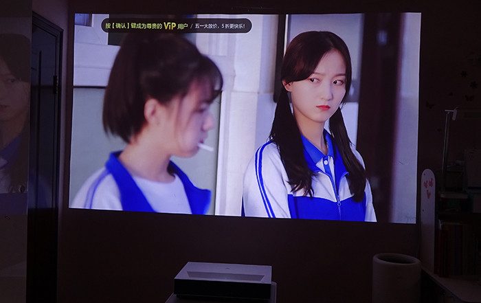 实际的观影投射效果(拍摄器材限制,实际的画面要更加细腻鲜活)。关键是,峰米C2超短焦0.23:1投射比,距墙面24cm左右就可获得100英寸4K画面,实际投射效果出色。并且,峰米C2相较于上一代4K Cinema 系列激光电视产品升级了MEMC运动补偿技术,高速运动画面更加连贯清晰,观影效果更好。加上,低蓝光护眼功能,长时间观看可以有效的减缓眼部疲劳。