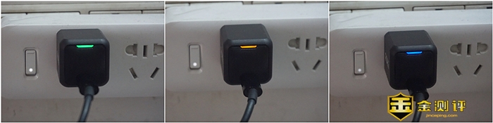 在充电头的背部有个长条形型的状态显示灯,在不同的充电状态下有不同的颜色区分,可视化的体验,一目了然。