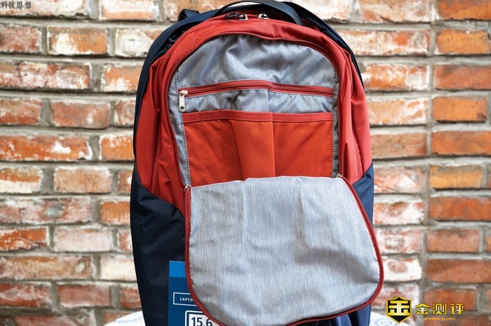 在主仓这里,我们可以找到专门给笔记本和平板电脑预留的位置,而且因为这款背包的背部一侧有加厚加固的处理,所以在背包时,笔记本也能够得到很好的保护,而且我们的背部也不会被笔记本硌到,日常通勤的时候会更加舒服一些。