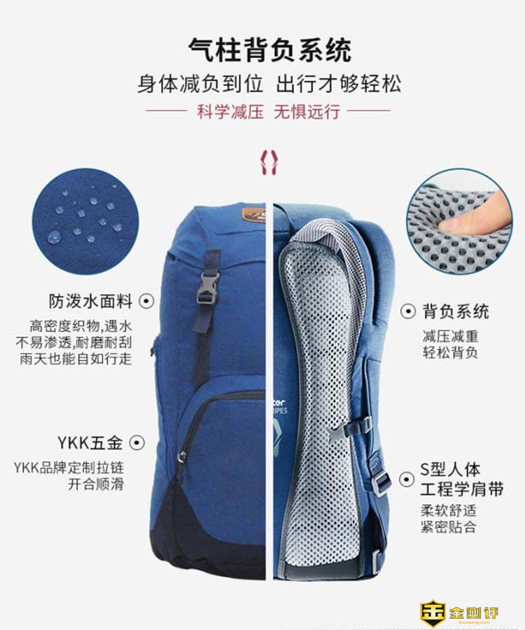 总之,WALKER复古休闲户外背包很不错,颜色搭配很时尚,空间不仅大,而且内部空间设计合理,日常上班、出差、旅行是足够了,放电脑的空间挺充足的。透气散热不错,面料是防水的,结合空柱背负系统,和宽宽的肩带,背上非常舒服,不会感觉很重,日常使用足够了。不得不承认,德国多特DEUTER复古休闲户外背包这款包是我背过的最舒服的高颜值城市包了,让我背得自信满满,最后也要感谢金测评给予的体验机会。
