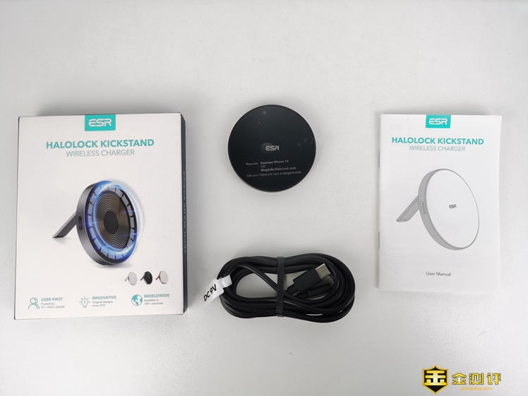 打开包装,抽出里面所有的东西,包含磁吸充电板一个,双TYPE-C口充电线一根,说明书一本,因为亿色公司的产品销往全球,所以在说明书上也是印有多国语言,可谓是大厂作风。