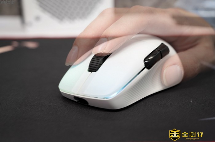 KONE Pro Air的左侧有两枚功能键,默认是作为浏览器前进后退键使用的,位置处理的很不错,因为鼠标左侧是一个稍向内凹的设计,所以在日常使用中不容易出现误触的问题,而且这两枚按键的操作手感也很清脆,同时反应灵敏,操作起来十分灵活。