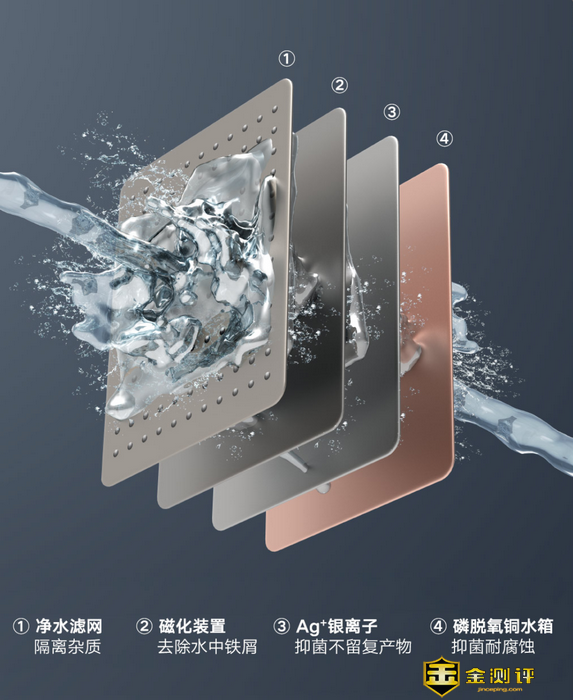 因为我们日常使用热水器时,都是直接接入自来水,不会专门把水净化之后再用来洗漱。不过一般的自来水并不是很纯净,这款热水器为此加入了4重抑菌净化功能,可以通过内部的净水滤网+磁化装置+Ag银离子+磷脱氧铜水箱,实现对自来水的高度净化。一般自来水管道里残留的铁锈、泥沙等杂质都可以被过滤掉,此外它还能实现抑制细菌滋生的效果,官方实验数据显示,经过4重净化处理后能够获得高达99.99%的抑菌效果。