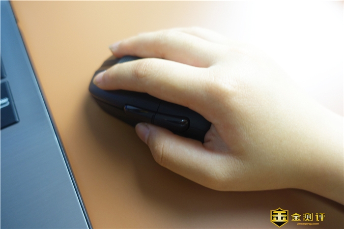 侧面采用的是深凹式的设计,能够让大拇指更加好的贴合,同时上方的两枚按键,手感非常的不错,回馈感比较的强。