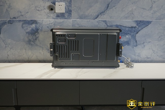 燃气热水器的背面采用了金属的装饰板,坚固耐用的同时还能快速散热,金属背板分布了散热孔以及固定挂钩,挂钩需要安装人员进行打孔固定燃气热水器,非专业人士建议不要轻易尝试。