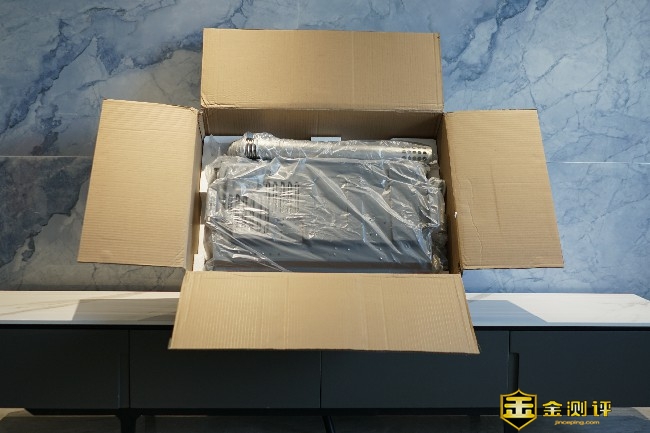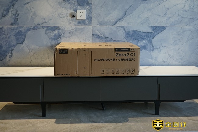 取出云米AI燃气热水器 Zero2 C1,可以看到燃气热水器表面有一层防护膜,在未使用前也起到了很好的防护作用。