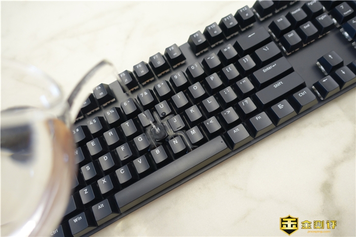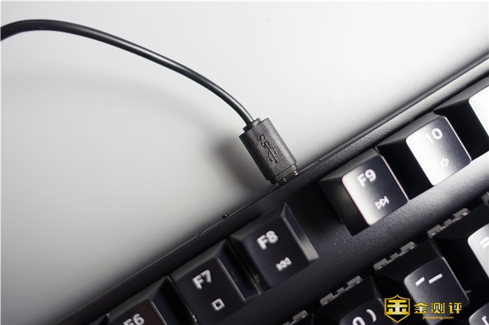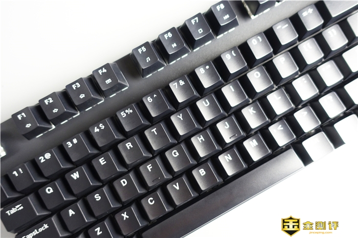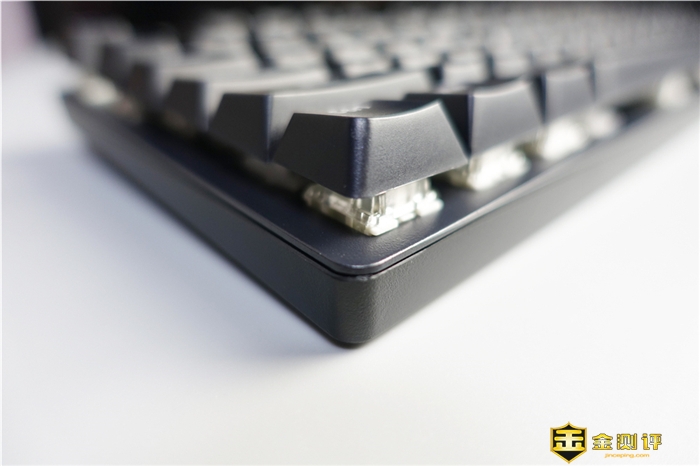 这种设计在手感方面是非常不错的,其次便于清洁,耐磨,不容易掉色,ABS注塑工艺材质使得键帽的边缘处没有任何的毛刺感,并且键位与键位之间相隔的比例也正好,整体上看上去非常的高大上。