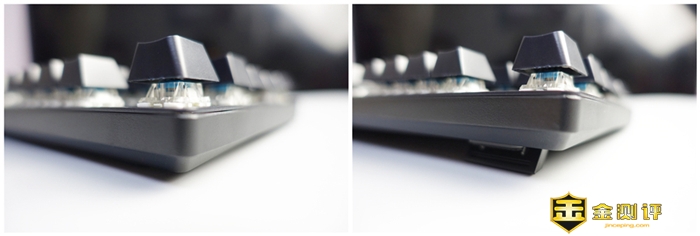 在键盘的左右两边也设计了折叠式的支架,可以起到平放和抬高的使用,支架对于平时在使用上,可以起到放平和抬高的使用,适合不同的使用习惯和不同桌面的需求。