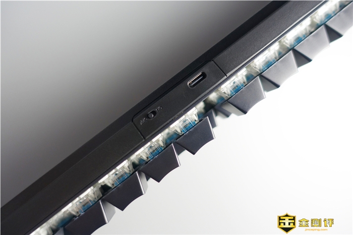 侧面可以看到,有一个Type-C的充电线接口,和一个开关键组成,因为是一款无线键盘,所以平时需要用到Type-C充电线进行充电,而且也支持边充边用。